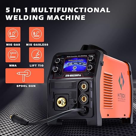 Sản phẩm HITBOX 5 in 1 Aluminum MIG Welder - 200Amp 220V Smart Control Program MIG Welding Machine Solid Flux Core Wire Gas Gasless MIG MAG Lift TIG MMA Stick Welder, LCD Display đang được bán với giá ưu đãi là $283.3891 tại nước Mỹ.