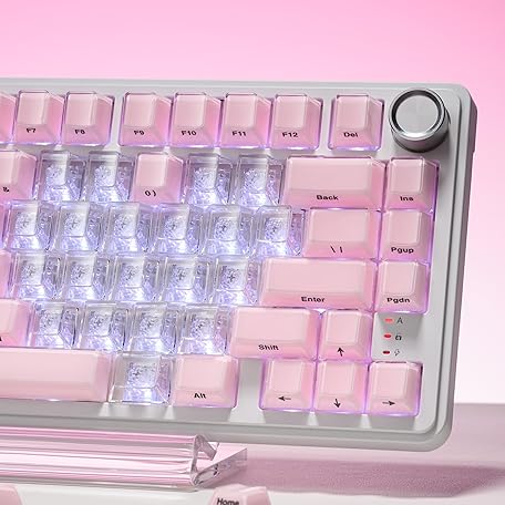 HITIME XVX Crystal Jelly Keycaps 75 Percent, Cute Custom Keycaps 95 Keys with 20 Keys Clear Key caps, Cherry Profile for 61/68/84/87 Cherry Gateron MX Mechanical, Side Printed, Pink
