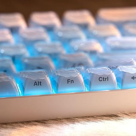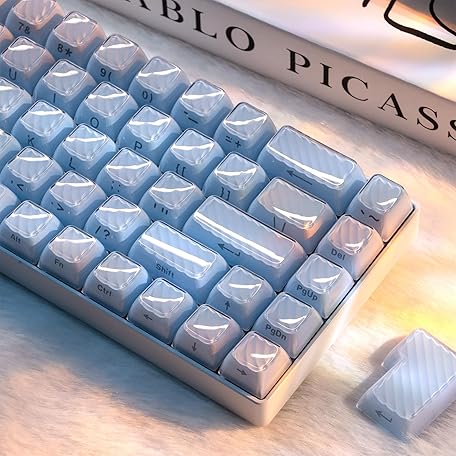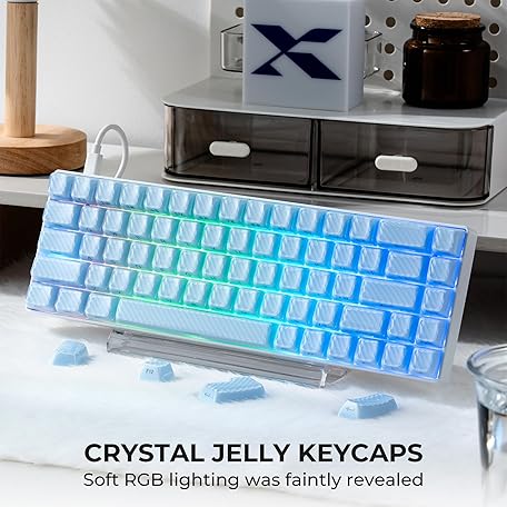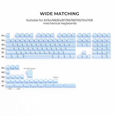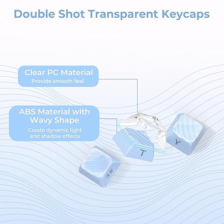 HITIME XVX Keycaps, Crystal Jelly Keycaps 75 65 60 100 Percent, Blue Custom Side Printed Key caps for ANSI/ISO Layout 61/68/84/87/98/104 Gaming Mechanical Keyboard, OEM Profile 136 Keys