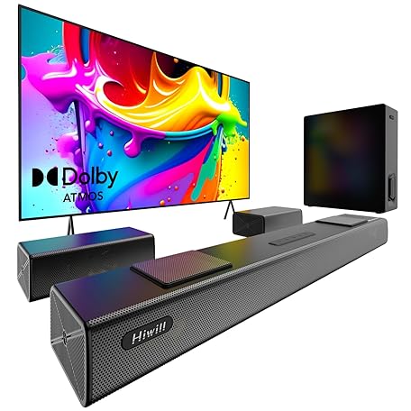 Hiwill Enhanced 5.1.2ch Dolby Atmos Soundbar, Home Theater Surround Sound System for TV, Sound Bar for Smart TV with 6.5" Subwoofer, 2 rear and 2 up-firing drivers, 2 side-firing tweeters, Nimbus A512