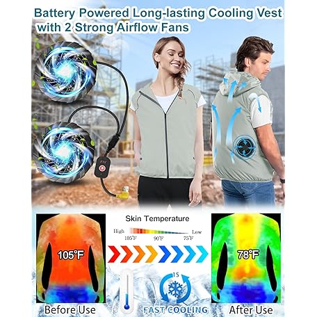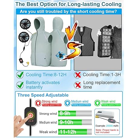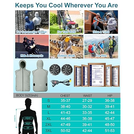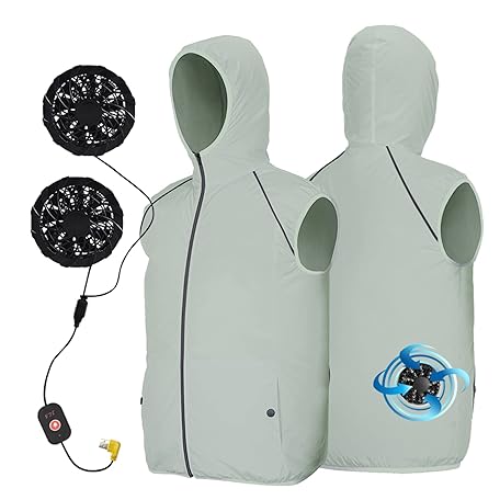 HJDHS Cooling Vest for Men Women - USB Battery Powered Wearable 3 Speed Fan Vest Air Conditioned Clothes for Hot Weather (Grey, 2X-Large)