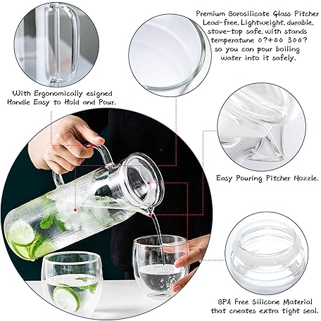 Sản phẩm hjn Glass Water Pitcher with Lid Glass Carafe with Handle, Fridge Water Jug for Cold or Hot Beverages,Iced Tea,Milk,Juice 1500ml/51oz & glass lid đang được bán với giá ưu đãi là $29.4191 tại nước Mỹ.