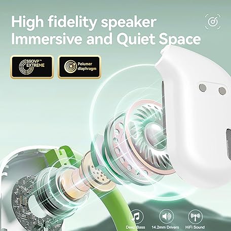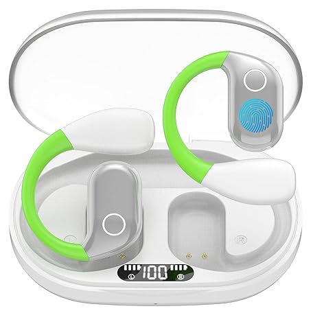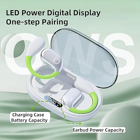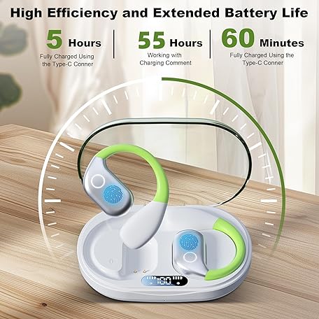 HJX OWS M82 Open Ear Earbuds Wireless Earphones Bluetooth 5.3 Headphone Sport, 55hrs Long Battery Life,Stereo Deep Bass Over Ear Bud with Earhooks, ENC Noise Cancelling Mic, Workout/Running(White)
