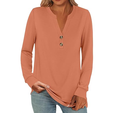 HJYUZP Long Sleeve Shirts for Women Spring Henley Business Casual Tops T-Shirts Work Tunic Blouses Outfits Vacation Clothes