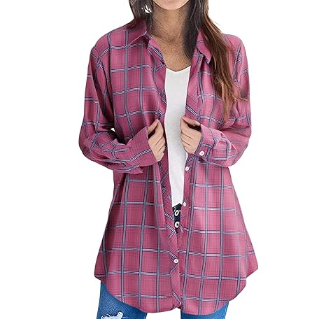 HJYUZP Plaid Shirts for Women Plus Size Long Cardigans Trendy Button Down Long Sleeve Loose Coatigan Work Jackets Open Front
