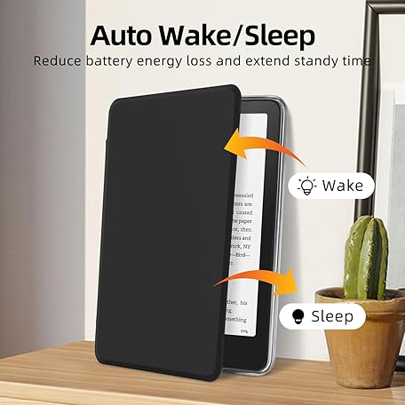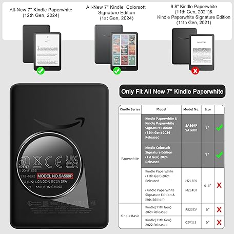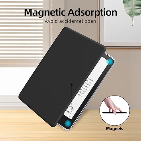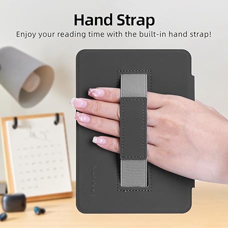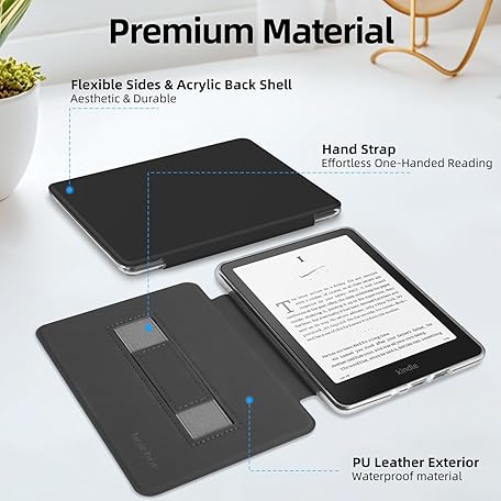 HOICHOE Case for All-New 7" Kindle Paperwhite 12th Gen 2024 and Kindle Colorsoft Signature Edition, Light PU Leather Cover and Transparent Hard Back Shell with Hand Strap, Auto Sleep/Wake, Noble Black