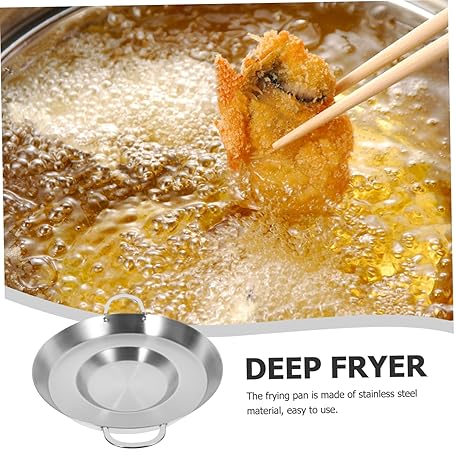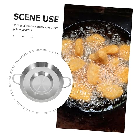 HOLIDYOYO Flat Stainless Skillet Nonstick Fryer Pot Stainless-steel Frying Pan Distribution Portable Kitchen Fryer