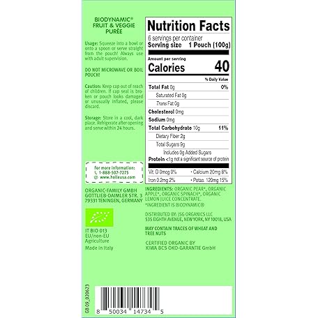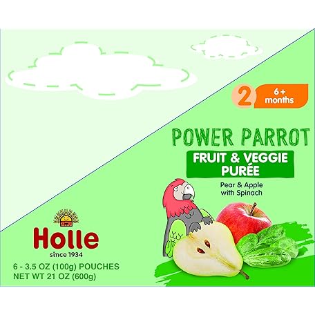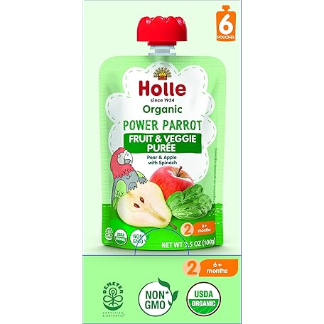 Sản phẩm Holle Organic Baby Food Pouches - Power Parrot Baby Puree with Pear, Apple & Spinach - (6 Pack) Organic Baby Snacks + Fruit and Veggie Pouches for Weaning Babies 6 Months and Older đang được bán với giá ưu đãi là $32.6891 tại nước Mỹ.