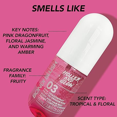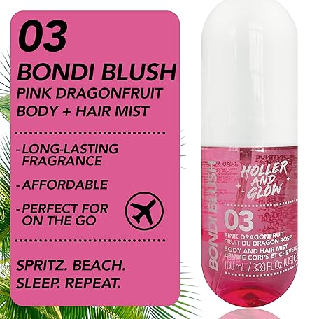 Holler And Glow Bondi Blush Pink Dragonfruit Body & Hair Mist, Body Spray For Women, Hair Perfume For Women, Jasmine, Amber Scented, Floral & Tropical, Travel Sized, 3.38 Fl Oz