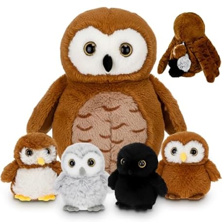 Hollowfly 5 Pcs Owls Plush Toy Gift Set 13.4" Mommy Barn Owls with 4 Cute Babies Stuffed Animal in Zippered Back Nurturing Plushies Toy Set for Kid Adults Birthday Party Favors Gifts
