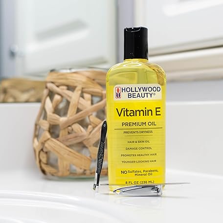 Hollywood Beauty Vitamin E Hair & Skin Oil, 8 oz - Prevents Dryness, Stimulates Healthy Hair Growth, Repairs Damaged Skin, Anti-Aging