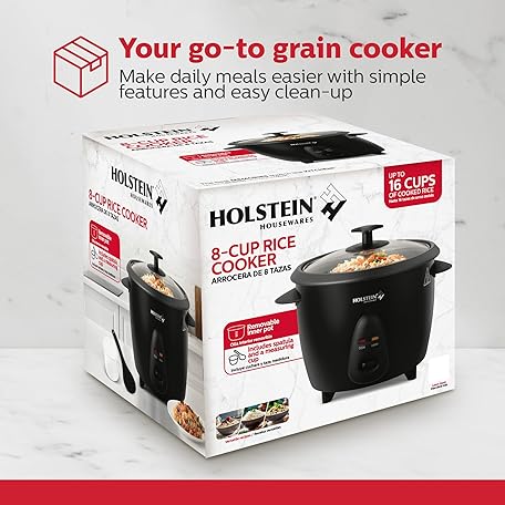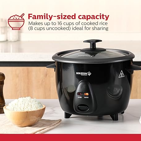 Thông tin sản phẩm Holstein Housewares 16-Cup Cooked (8-Cup Uncooked) Rice Cooker, Black – One-Touch Operation with Cook & Keep Warm Functions, Perfect for Rice, Quinoa, Oatmeal, Stews & Grains