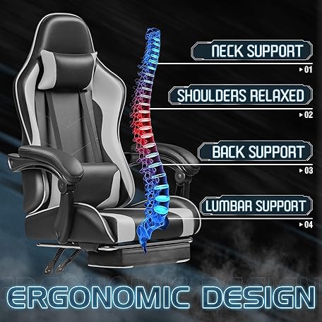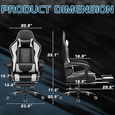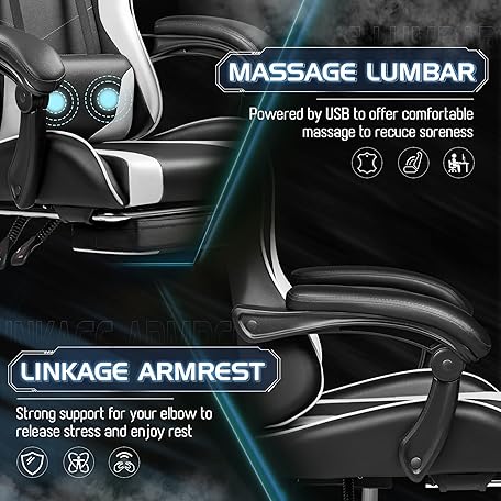 Thông tin sản phẩm Homall Gaming Chair, Video Game Chair with Footrest and Massage Lumbar Support, Ergonomic Computer Chair Height Adjustable with Swivel Seat and Headrest (White)