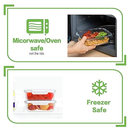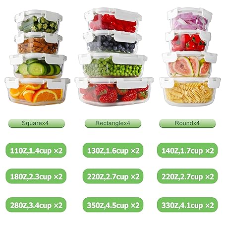 Thông tin sản phẩm HOMBERKING 24pc Glass Food Storage Containers with Lids, Glass Meal Prep Containers with Leak Proof Snap Lock Lids, Airtight Bento Lunch Boxes, Kitchen Storage (12 lids & 12 Containers) - White