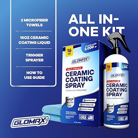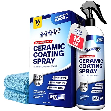 Home Ceramic Coating Spray Kit (16 oz) - Shine, Seal & Protect Stainless Steal, Glass, Kitchen & Bath Surfaces - Extremely Hydrophobic - Repels Stains & Grime - Includes 2 Micro Fiber Towels
