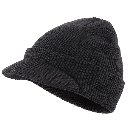 Home Prefer Mens Wool Blend Winter Hat Double-Layer Warm Knit Pre-Curve Visor Beanie Brimmed Beanies Hat for Men Women
