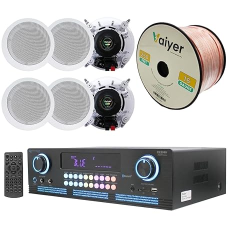 Sản phẩm Home Theater System Kit 2000 Watts Bluetooth Amplifier with 6 Qty 6.5" 200 Watts in-Wall in-Ceiling Speakers & 16 Gauge 250 ft. Speaker Wire by Technical Pro đang được bán với giá ưu đãi là $464.0239 tại nước Mỹ.