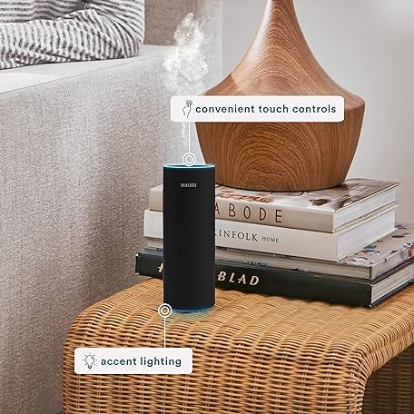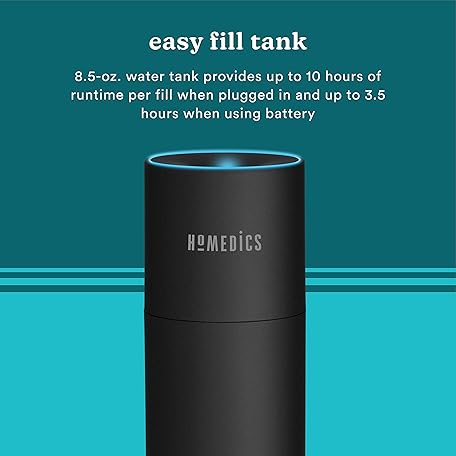 Thông tin sản phẩm Homedics Portable Humidifier - Small Air Humidifiers for Bedroom, Plants, Office, Travel - Cool Mist Humidifiers, Color-Changing Accent Light, 2 Mist Settings, Black