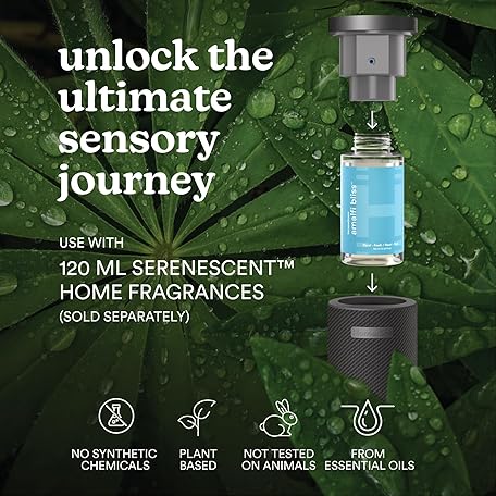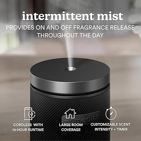 Thông tin sản phẩm Homedics SereneScent Fabric Rechargeable Waterless Diffuser, Use with Homedics SereneScent Oil 120ml (Sold Separately) Cordless Aromatherapy, Adjustable Mist & Timer, 6 Calming Lights, Black