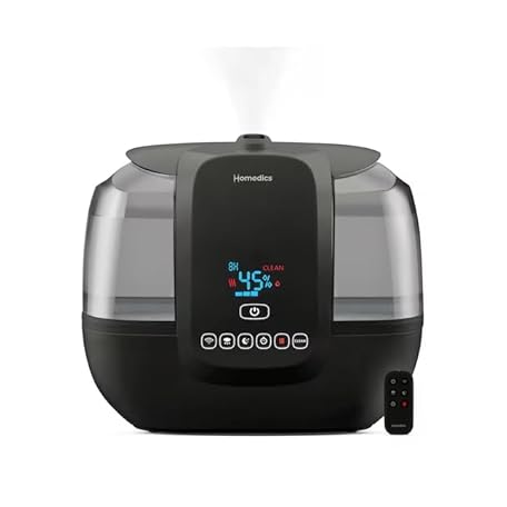 HOMEDICS Total Comfort Ultrasonic Humidifier with UV-C Technology Warm and Cool Mist, Top-Fill, 120-Hour, 2-Gallon (For Rooms Up To 587-sq ft) Black