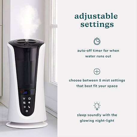 Thông tin sản phẩm Homedics Ultrasonic Humidifier – Large Deluxe Air Humidifiers for Bedroom, Plants, Office – Cool and Warm Mist Humidifiers, Essential Oil Pads and Built-In Timer, 5 Mist Settings, White and Black
