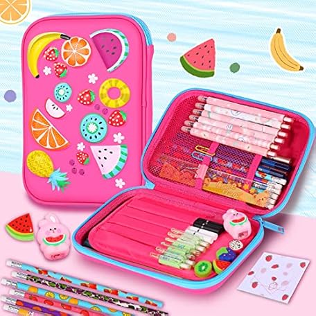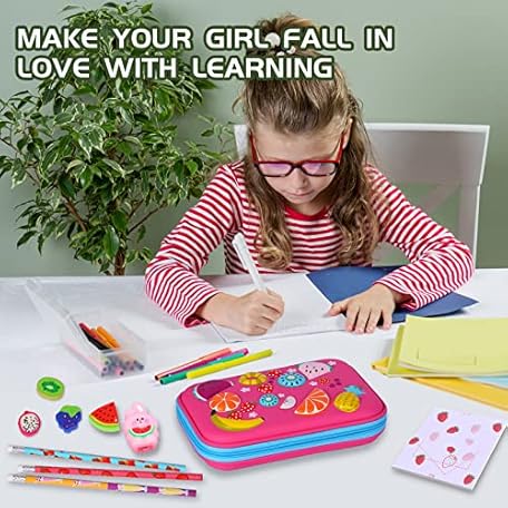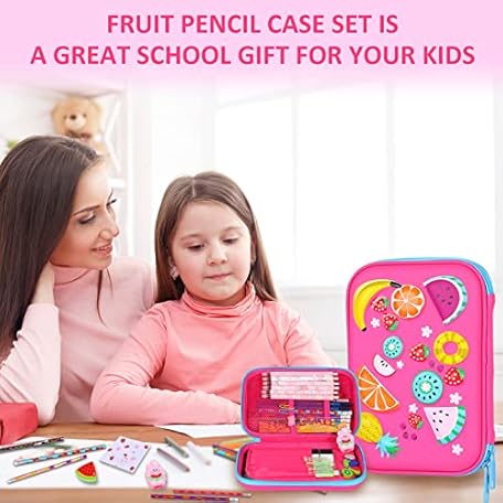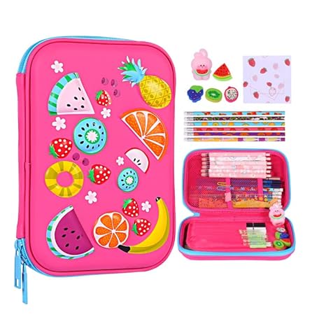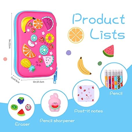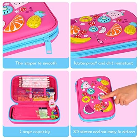 homicozy Pencil Case for Girls,Cute Fruit Stationary Set for Kids,3D EVA School Large Capacity Pencil Pen Box with Compartment,School Supplies for Girls,Back to School Gifts for Kids,Rose Red