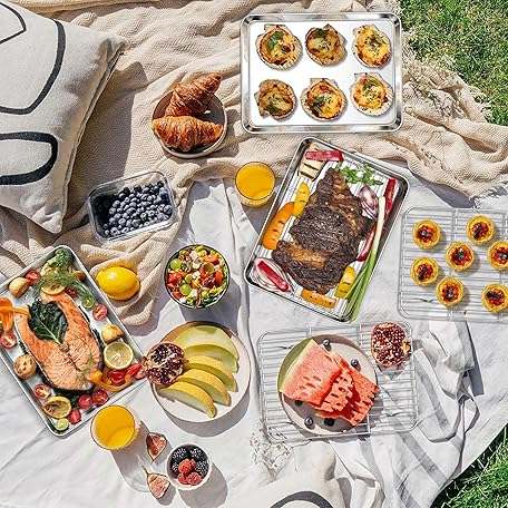 Thông tin sản phẩm Homikit Baking Sheet with Wire Rack, 10 x 8 Inch Stainless Steel Cookie Sheets for Baking, Small Baking Pan with Cooling Rack, Nonstick Metal Toaster Oven Bacon Tray, Rust Free & Dishwasher Safe