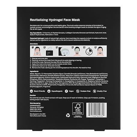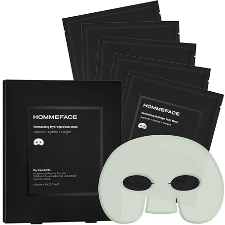 Thông tin sản phẩm HommeFace Men’s Revitalizing Hydrogel Facial Mask Set (5ct) - Hydrating, Beard-Friendly, Anti-Aging, Soothing Face Sheet Masks - Korean Skincare Technology with Hyaluronic Acid, Vitamins & Peptides