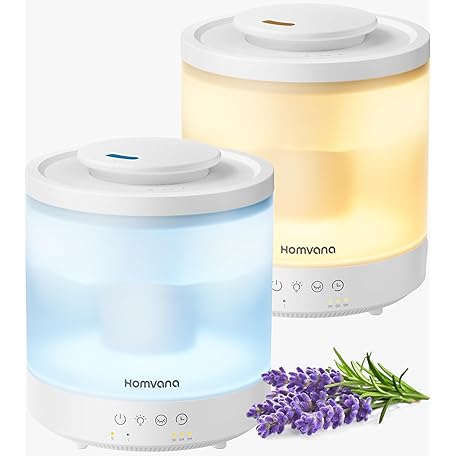 Thương hiệu Homvana là cái tên nổi tiếng được rất nhiều khách hàng trên thế giới chọn lựa. Với kiểu dáng đẹp mắt, sang trọng, sản phẩm Homvana Small Humidifiers for Bedroom - 2 Packs 1.5L Cool Mist Top Fill Humidifier for Baby Nursery, Essential Oil Diffuser, 3 in 1 for Home Plants Offices and Grow Tents, 7 Color Lights, Ultrasonic là sự lựa chọn hoàn hảo nếu bạn đang tìm mua một món cho riêng mình.