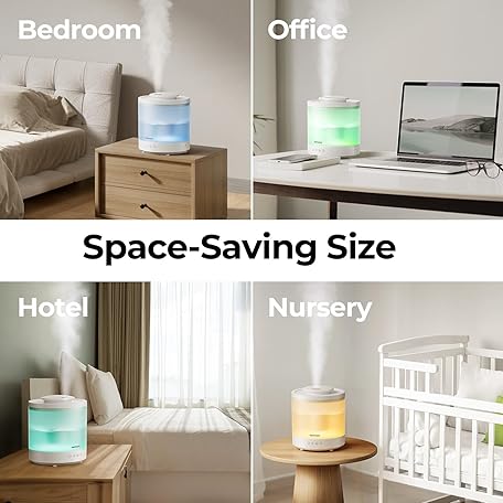 Thông tin sản phẩm Homvana Small Humidifiers for Bedroom - 2 Packs 1.5L Cool Mist Top Fill Humidifier for Baby Nursery, Essential Oil Diffuser, 3 in 1 for Home Plants Offices and Grow Tents, 7 Color Lights, Ultrasonic