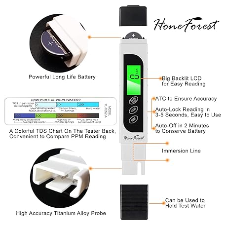 Thông tin sản phẩm HoneForest TDS Meter, Digital Water Tester - Accurate and Reliable, Measures TDS, EC & Temperature (°F/°C), 0-9990ppm, Water Test Meter for Drinking Water, RO/DI System, Aquariums, etc