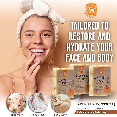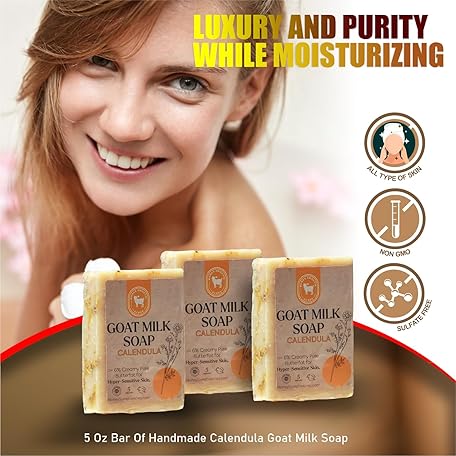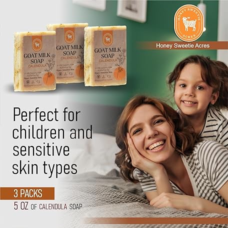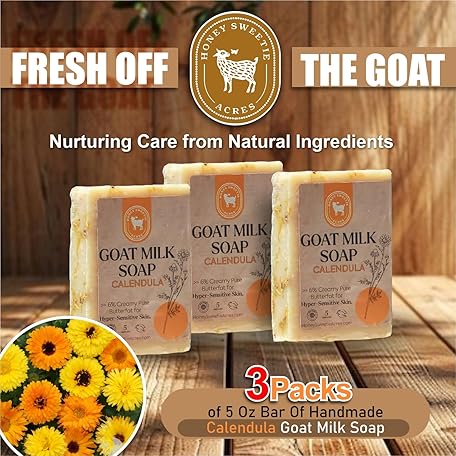 • Honey Sweetie Acres 3-Pack Calendula Goat Milk Soap - Handmade 5 oz Bar, Made with Natural Ingredients, Moisturizing & Gentle, Made in the USA