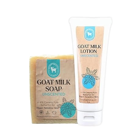 Honey Sweetie Acres Goat Milk Handmade Skincare Bundle Lotion & Soap Bar for Luxurious Hydration, Gentle Cleansing, All-Natural Care (Unscented)