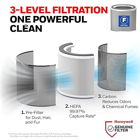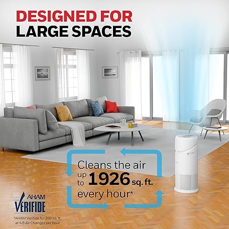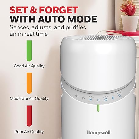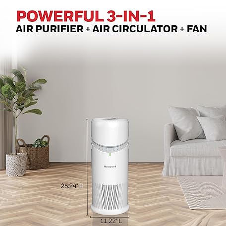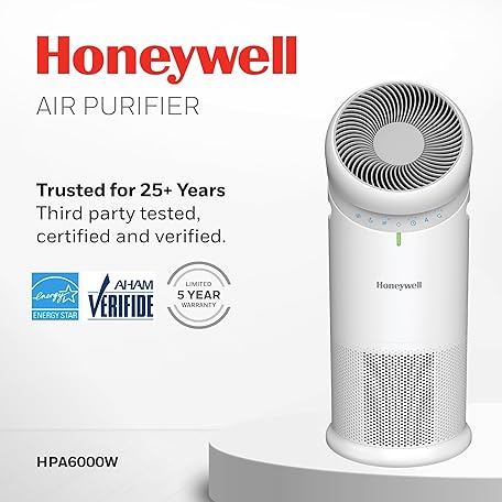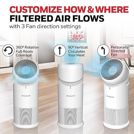 Thông tin sản phẩm Honeywell Allergen Plus™ 3-in-1 HEPA Air Purifier, Fan & Adjustable Airflow with 30°, 90°, or 360° Circulation for Large Rooms up to 1928 sq ft, Air Quality Sensor, Sleep Mode, HPA6000, White