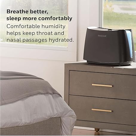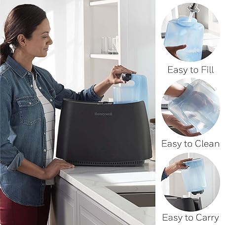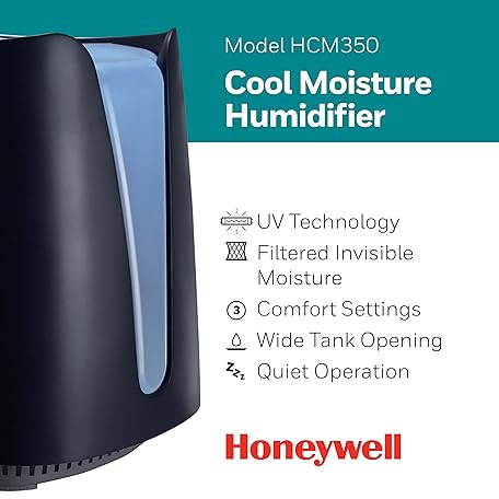Thông tin sản phẩm Honeywell Cool Moisture Humidifier For Bedroom, Medium Rooms, 1.1 Gallon, Invisible Moisture Humidifier for Baby, Kids, Quiet, Easy to Clean, UV Technology, Black, HCM350B