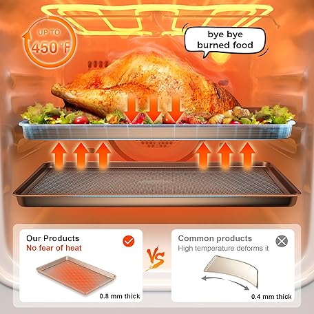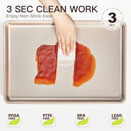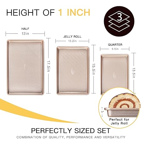 Thông tin sản phẩm HONGBAKE Baking Sheet Pan Set of 3, Cookie Sheets for Oven, Nonstick Half/Quarter/Jelly Roll Pans with Diamond Texture Pattern, 0.8mm Thick Heavy Duty Cookie Tray, Champagne Gold