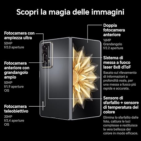 • HONOR Magic V2 Standard Edition Dual SIM 512GB ROM + 16GB RAM (GSM | CDMA) Factory Unlocked 5G Smartphone (Midnight Black) - International Version