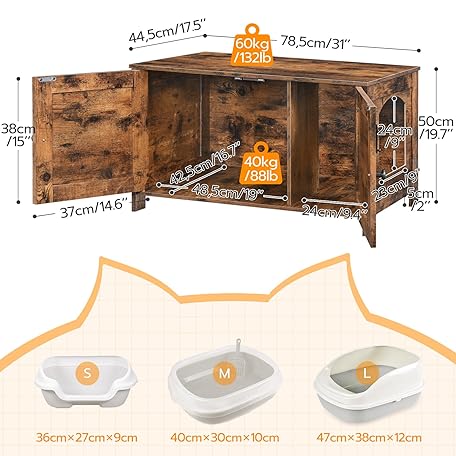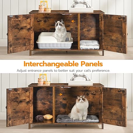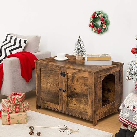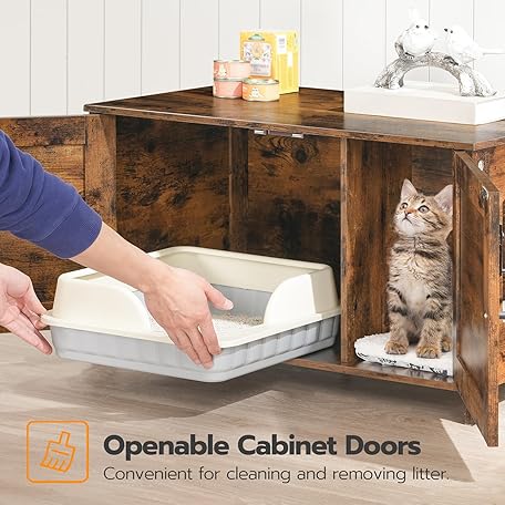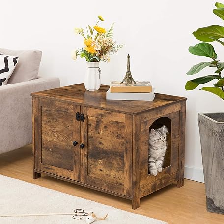 HOOBRO Litter Box Enclosure, Cat Litter Box Furniture with Removable Divider, Large Hidden Litter Box Furniture, Wooden Cat House, End Side Table, 31" L x 17.5" W x 19.7" H Rustic Brown BF03MW01G2