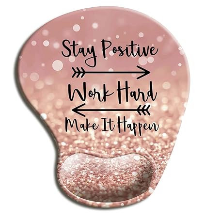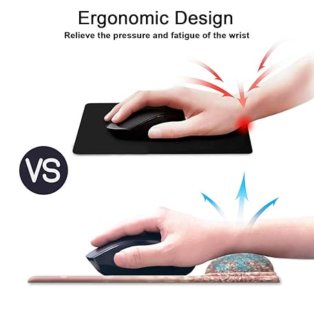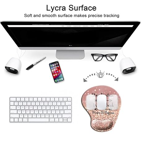HOPONY Ergonomic Mouse Pad with Gel Wrist Rest Support, Gaming Mouse Pad with Lycra Cloth, Non-Slip PU Base for Computer, Laptop, Home, Office & Travel Hands Pain Relief Rose Gold