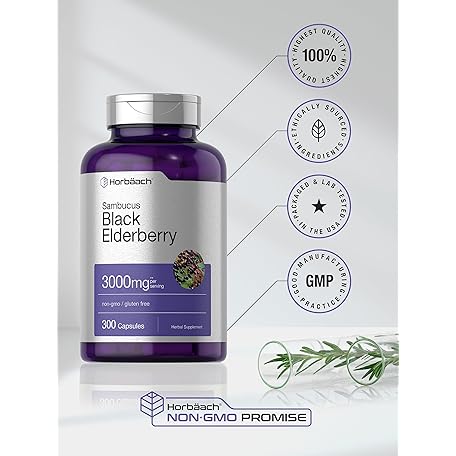 Sản phẩm Horbäach Black Elderberry | 3000mg Capsules | 300 Count | Non-GMO, Gluten Free | Sambucus Supplement đang được bán với giá ưu đãi là $17.9523 tại nước Mỹ.
