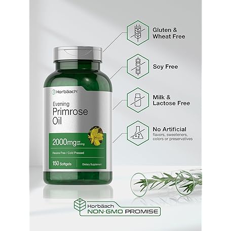 Thông tin sản phẩm Horbäach Evening Primrose Oil Softgels | 2000 mg | 150 Pills | Cold Pressed, Hexane Free Supplement with GLA | Non-GMO, Gluten Free