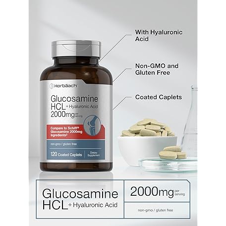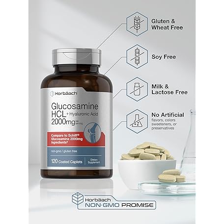 Sản phẩm Horbäach Glucosamine HCL | with Hyaluronic Acid | 2000mg | 120 Coated Caplets | Non-GMO & Gluten Free Supplement đang được bán với giá ưu đãi là $13.0691 tại nước Mỹ.
