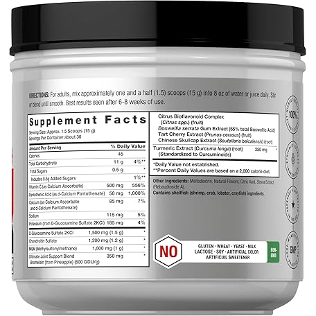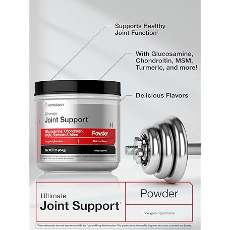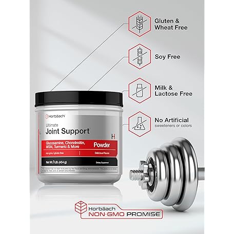 Horbäach Ultimate Joint Support Powder 1 lb | Glucosamine, Chondroitin, MSM & Turmeric | Triple Action Support Supplement for Men and Women | Non-GMO, Gluten Free