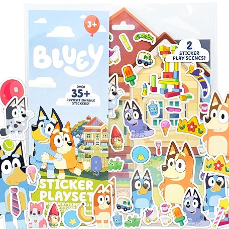 Sản phẩm Horizon Group USA Bluey Sticker Playset, 2 Sticker Play Scenes, 35+ Reusable Puffy Bluey Repositionable Stickers for Kids, Perfect for Travel, Screen-Free Fun đang được bán với giá ưu đãi là $7.0741 tại nước Mỹ.