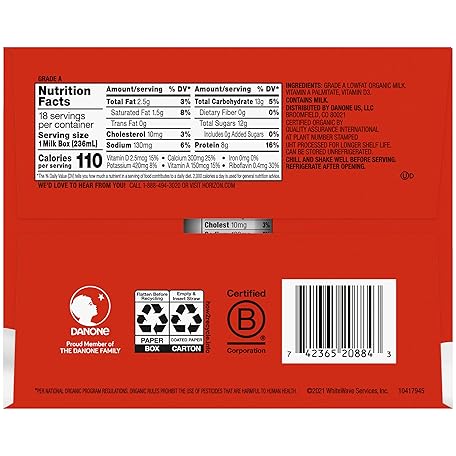 Thông tin sản phẩm Horizon Organic Shelf Stable 1% Lowfat Milk Boxes, 8 fl oz, 18 Count - 8g Protein per Serving, USDA Organic UHT from Pasture-Raised Cows, Ready to Drink for Lunchbox, Travel, or On-the-Go, No Refrigeration Needed