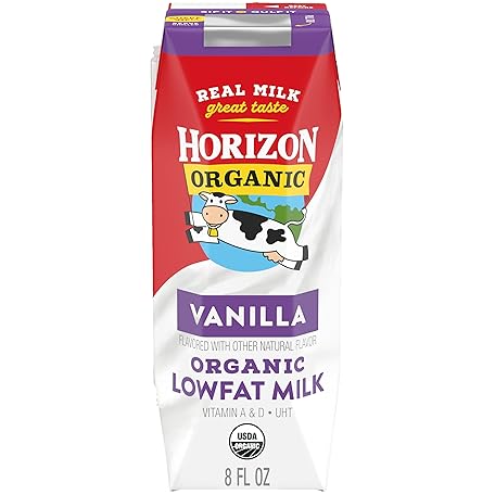 Thông tin sản phẩm Horizon Organic Shelf Stable 1% Lowfat Vanilla Milk Box, USDA Organic UHT from Pasture-Raised Cows, 8 fl oz, Ready to Drink for Lunchbox, Travel, or On-the-Go, No Refrigeration Needed