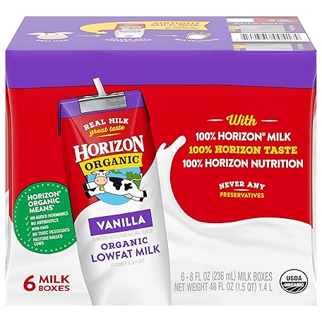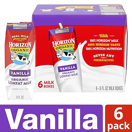 Thông tin sản phẩm Horizon Organic Shelf Stable 1% Lowfat Vanilla Milk Boxes, 8 fl oz, 6 Count - 8g Protein per Serving, USDA Organic UHT, Ready to Drink for Lunchbox, Travel, or On-the-Go, No Refrigeration Needed