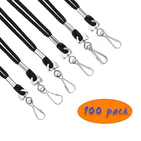 Thông tin sản phẩm HOSL Black Nylon Lanyards, 100 Pack Bulk Office ID Card Lanyards with Swivel Hook (Modern/Fitted, 19 inches, 1.54lb)