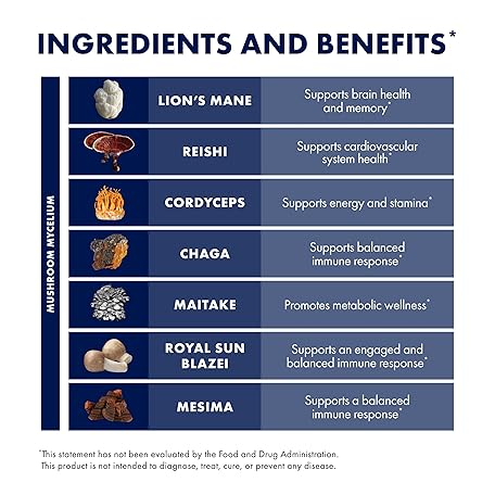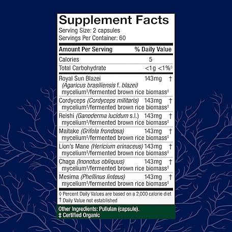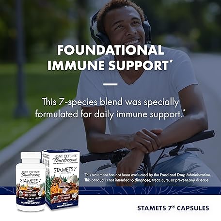 Thông tin sản phẩm Host Defense Stamets 7-7 Species Blend - Mushroom Supplement for Immune Support - Includes Royal Sun Blazei, Cordyceps, Reishi, Maitake, Lion's Mane, Chaga & Mesima - 120 Capsules (60 Servings)*
