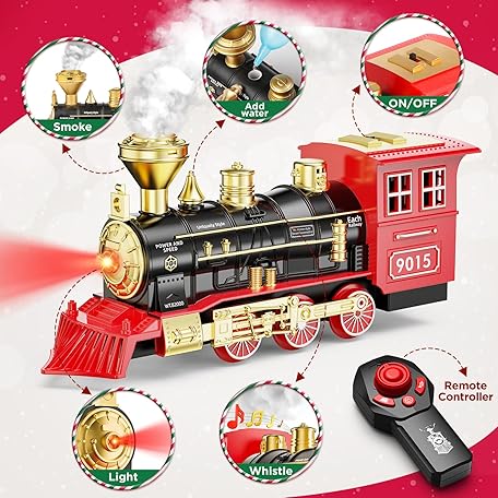 Thông tin sản phẩm Hot Bee Remote Control Train Locomotive, Train Steam Engine Toy w/Smoke, Lights & Sounds, Christmas Trains Toys Gifts for 3 4 5 6 7 8+ Years Old Kids